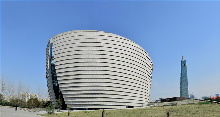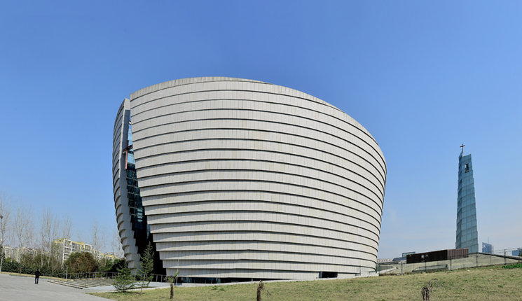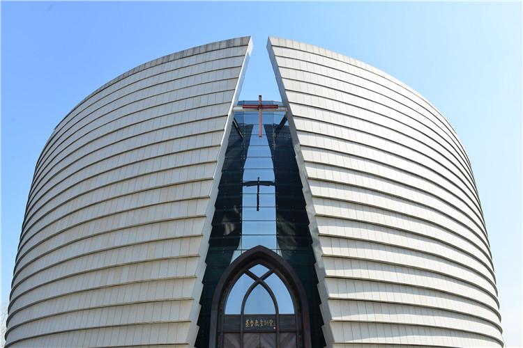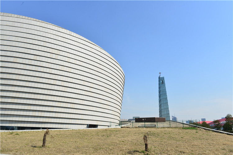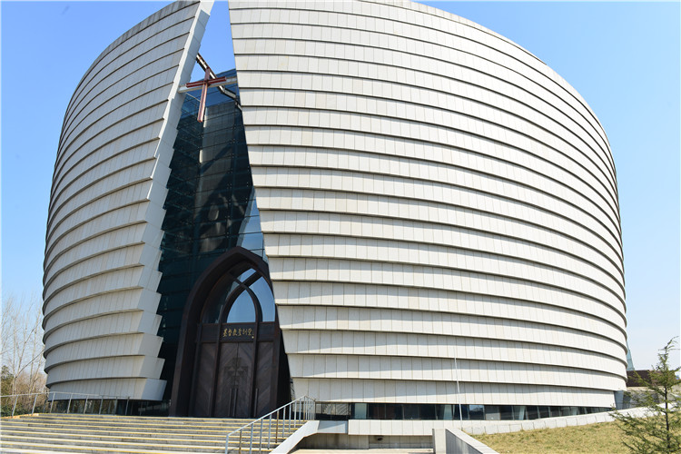 位于南京河西金陵圖書館北部,建筑面積1.3萬平方米,其中主堂建筑面積7063平方米。鋼結構外圍護采用了旭建公司的125mm花紋板,6000平方的外立面呈倒錐體弧形造型,ALC板材的天然質感與教堂的古樸氣質渾為一體,莊嚴、神圣。圣訓堂作為國際化大教堂成為國內外基督徒宗教聚會、開展教職、人員培訓和文化交流的重要場所,匹配了南京作為國際化大都市的宗教功能。